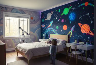 Transforming bedrooms with nature, cartoons, superheroes, and space themes that glow in the dark!